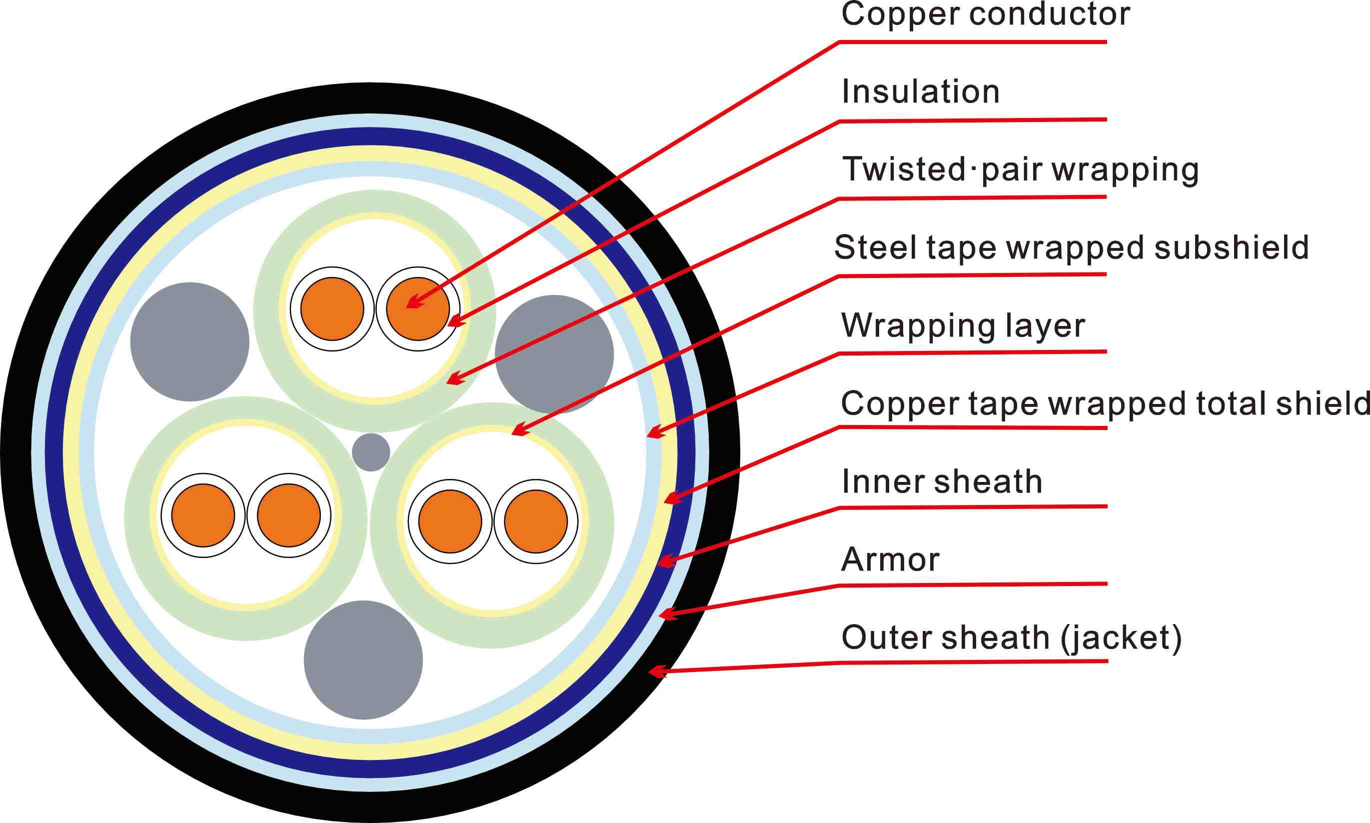 Isolation: PE/XLPE pour de faibles pertes diélectriques ; PVC/EPR en option