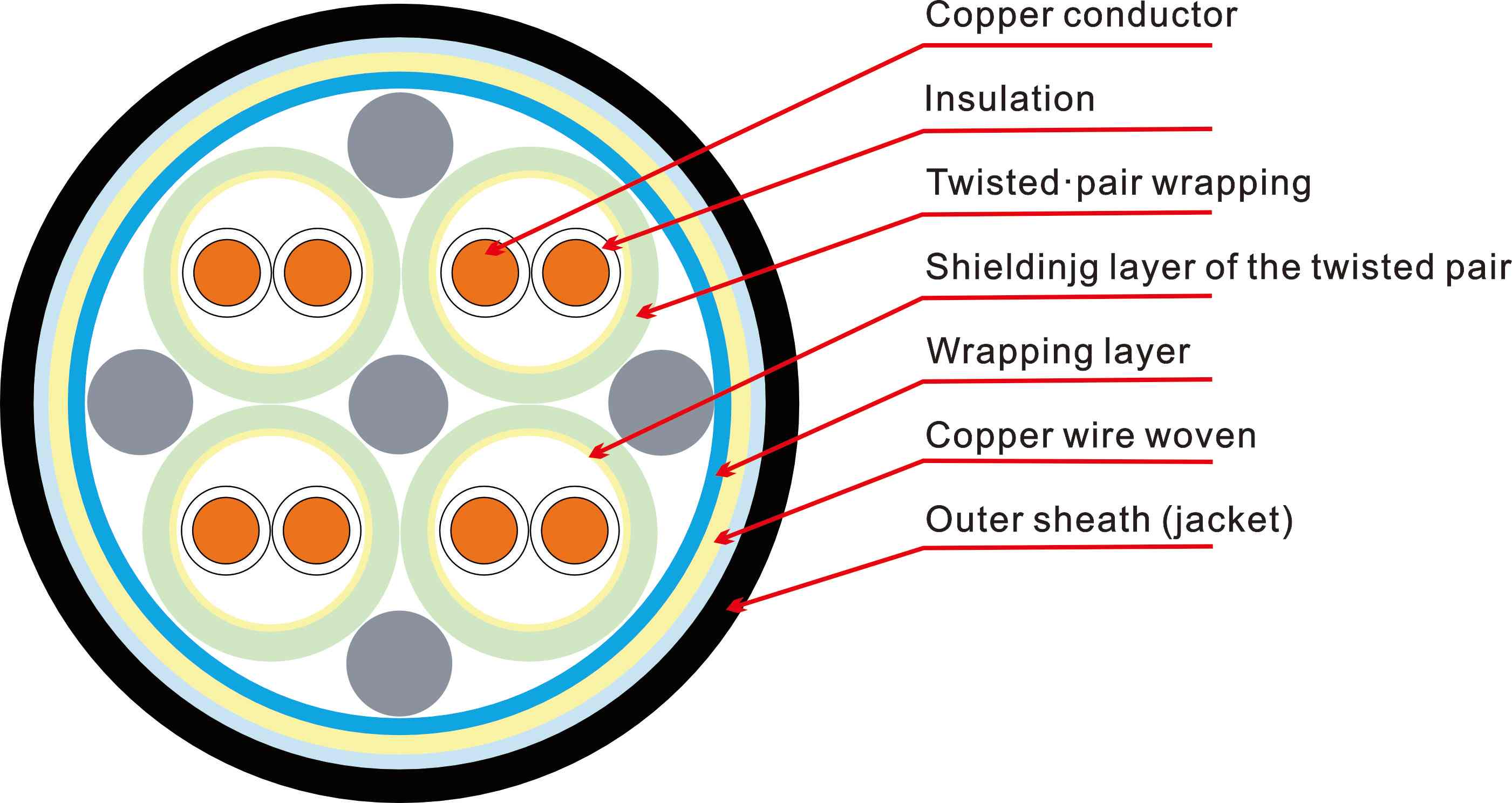 Câble informatique du groupe Tiankang Ce câble est largement utilisé dans l'automatisation industrielle, la transmission de signaux d'instrumentation, les systèmes d'acquisition de données et les réseaux informatiques. Il est fabriqué avec des conducteurs en cuivre sans oxygène de haute pureté, associés à des matériaux isolants haute performance tels que le PVC ignifugé et le XLPE. Plusieurs options de blindage sont disponibles : feuille d'aluminium, blindage tressé ou double blindage, minimisant efficacement les interférences électromagnétiques et garantissant une transmission du signal stable et fiable.