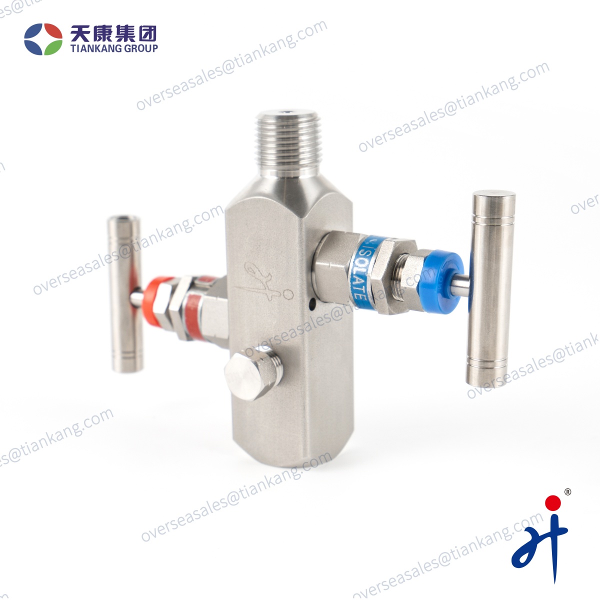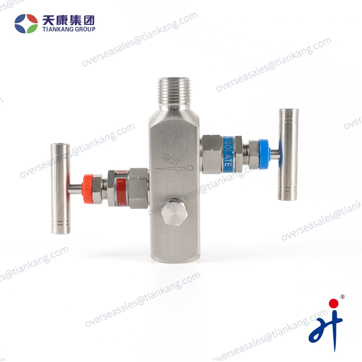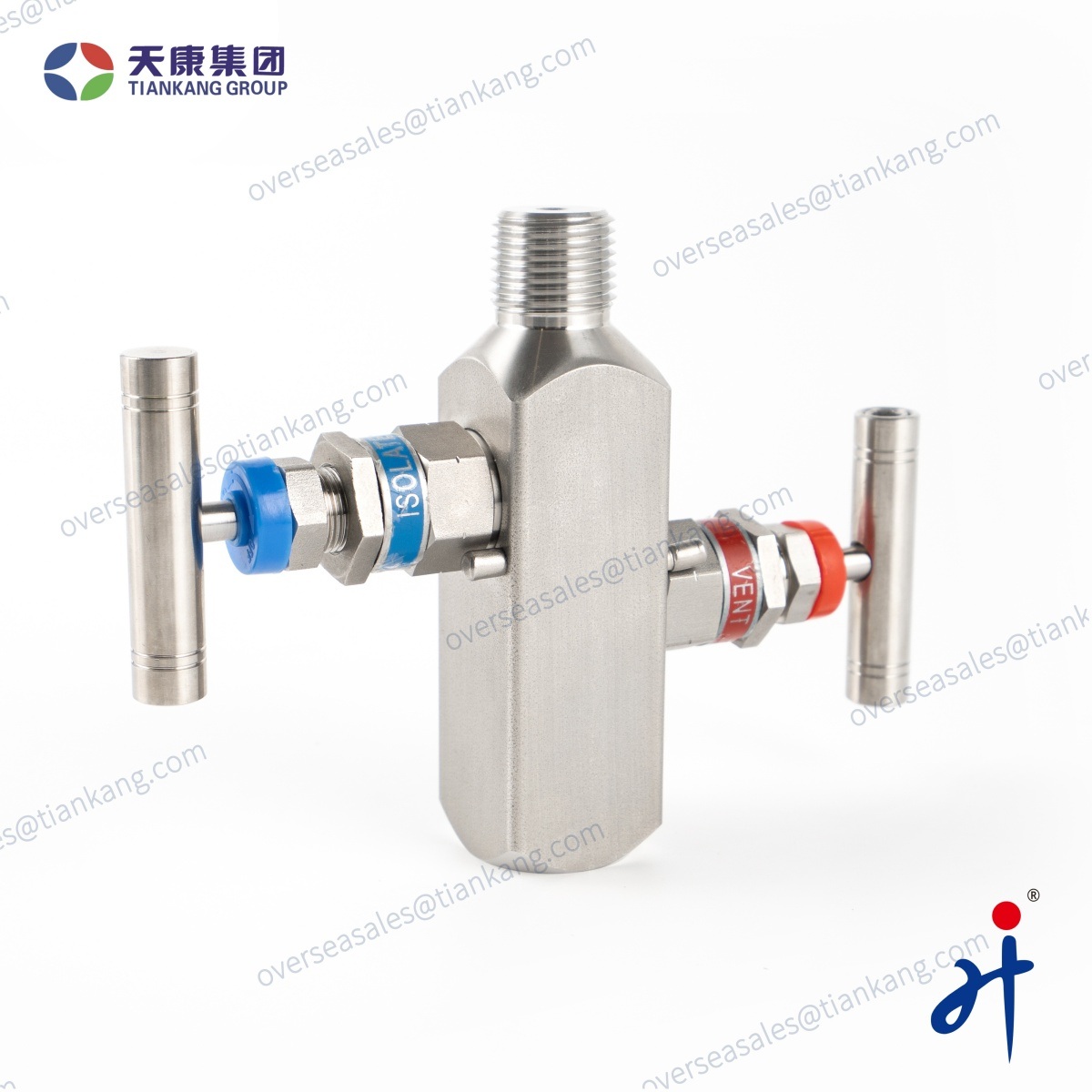 Le collecteur à deux vannes en ligne TianKang HongJi est conçu pour une mesure de pression précise et une isolation sécurisée des instruments. Il est doté d'un raccord process mâle NPT 1/2" pour l'installation sur canalisation et d'un raccord instrument femelle NPT 1/2" facilitant le montage de manomètres ou de transmetteurs de pression.